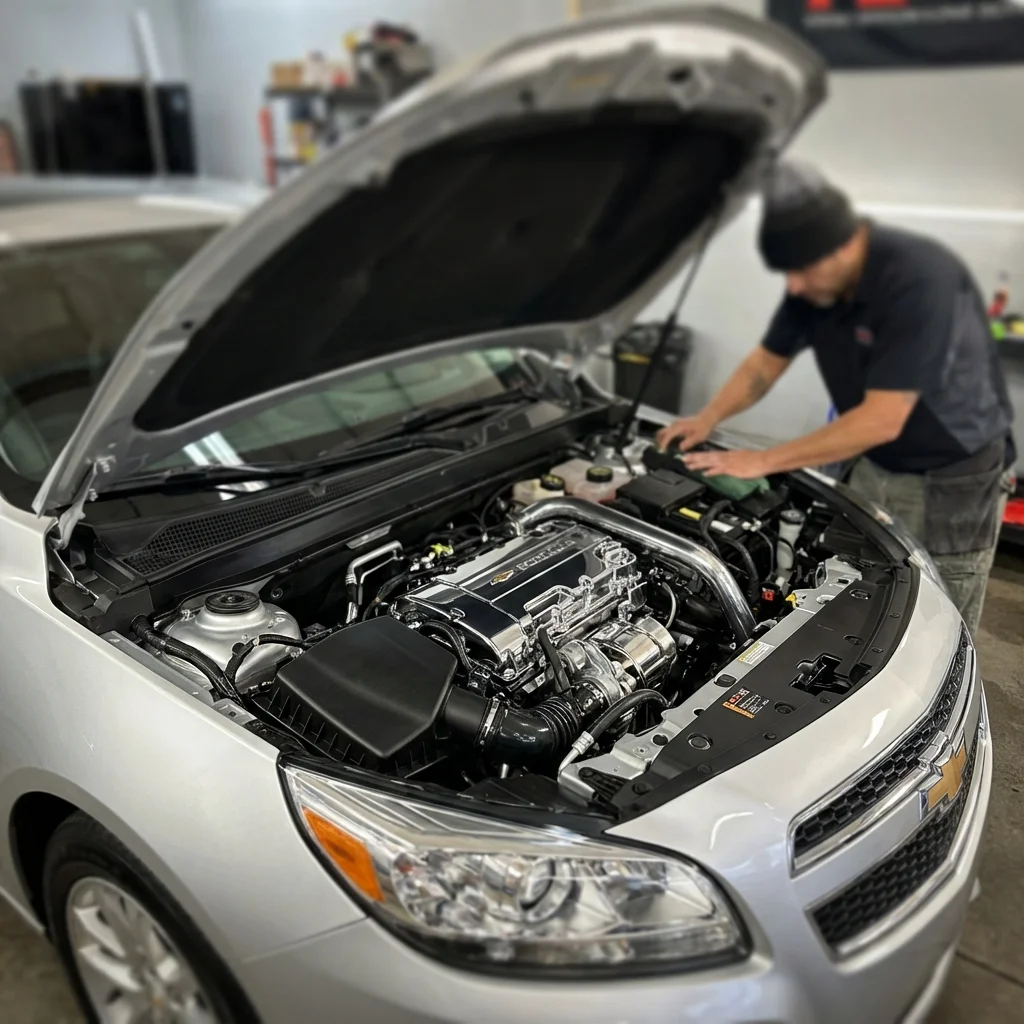 Professional engine bay cleaning to remove grime and restore appearance.